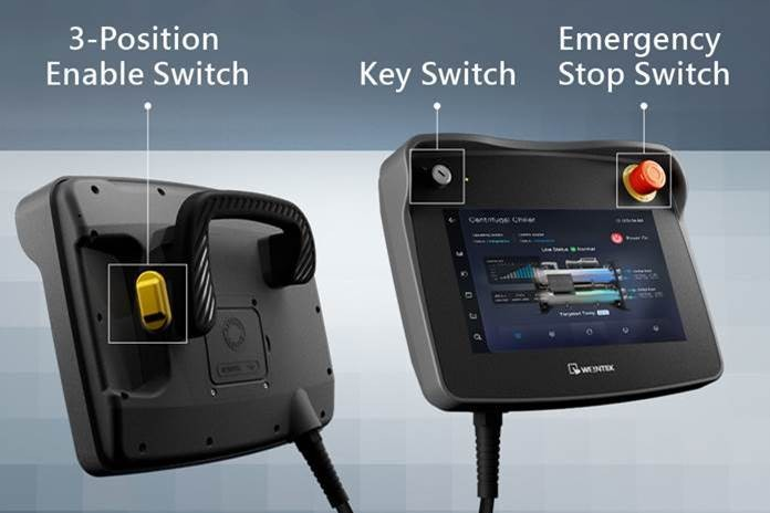 cMT3106XM – Handheld Advance 10″ Klijent/Server HMI. Ugrađen key-switch, Emergency stop switch i 3-position enable switch.